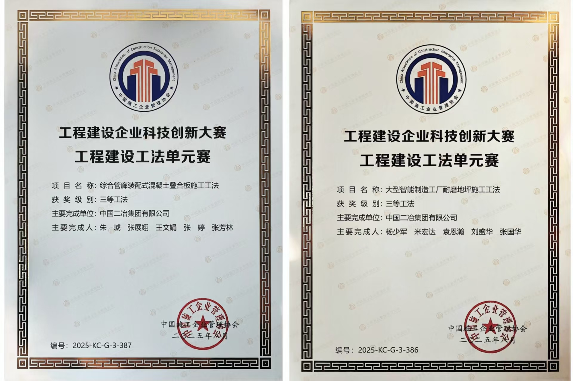 近日,湖南分公司申報(bào)的《大型智能制造工廠耐磨地坪施工工法》《綜合管廊裝配式混凝土疊合板施工工法》兩項(xiàng)核心技術(shù)成果,在工程建設(shè)企業(yè)科技創(chuàng)新大賽工程建設(shè)工法單元賽中,經(jīng)多輪嚴(yán)格考核,均榮獲三等獎(jiǎng),憑借過硬技術(shù)實(shí)力獲得行業(yè)專家高度認(rèn)可。?
